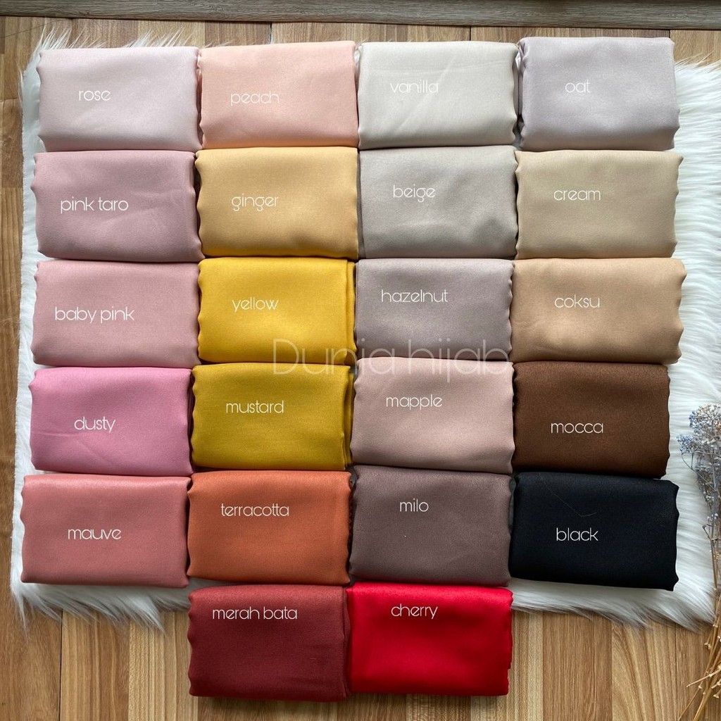 Produk ini memiliki 31 Variasi WARNA yaitu : PEACH,GINGER,YELLOW,MUSTARD,TERRACOTTA,MARRON,ROSE,PINK TARO,BABY PINK,DUSTY,MAUVE,VANILLA,CHERRY,OAT,CREAM,COKSU,BLACK,NAVY,DARK GREY,BABY GREY,DUSTY BLUE,DUSTY MINT,GREEN BOTTLE,ARMY,BROWN,MERAH BATA,DENIM,WARDAH,DAISY,BIRU ELEKTRIK,BEIGE,