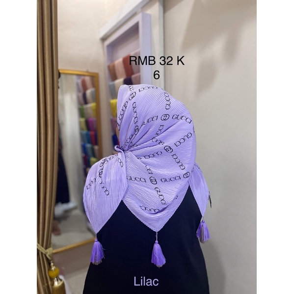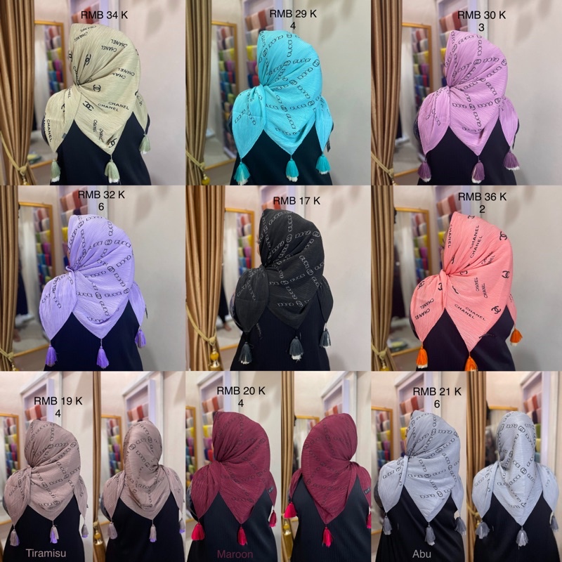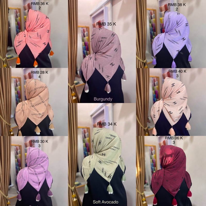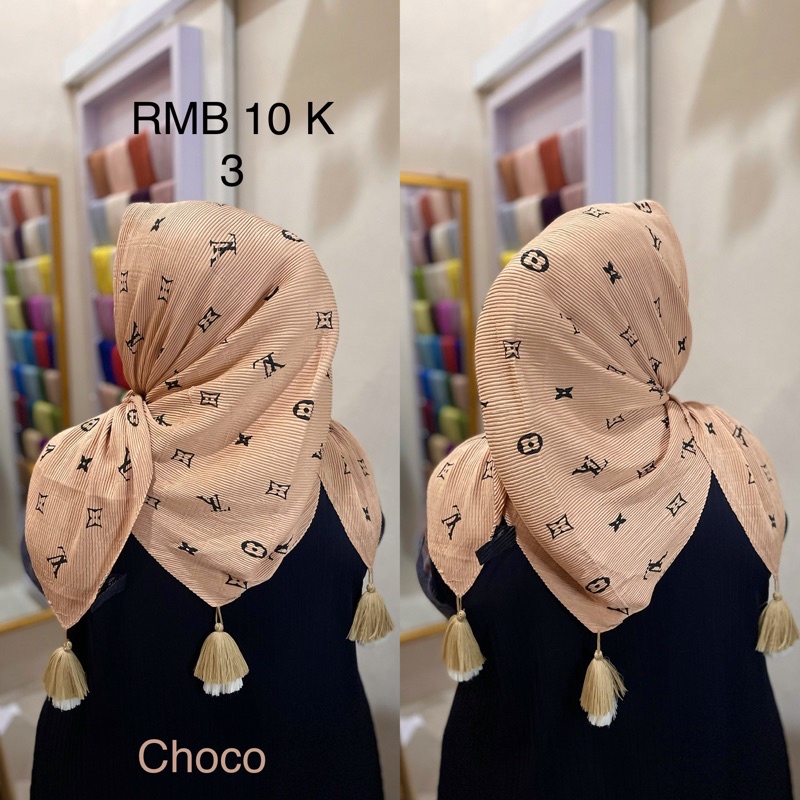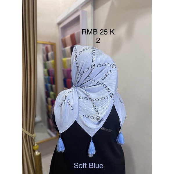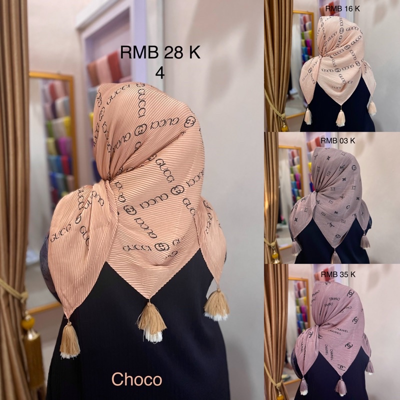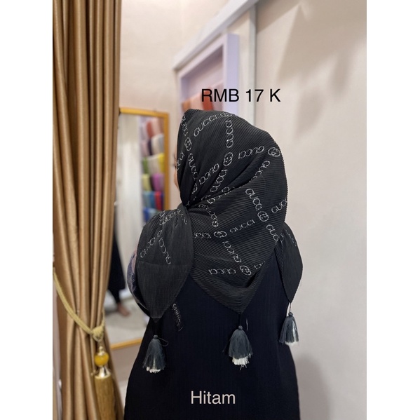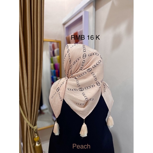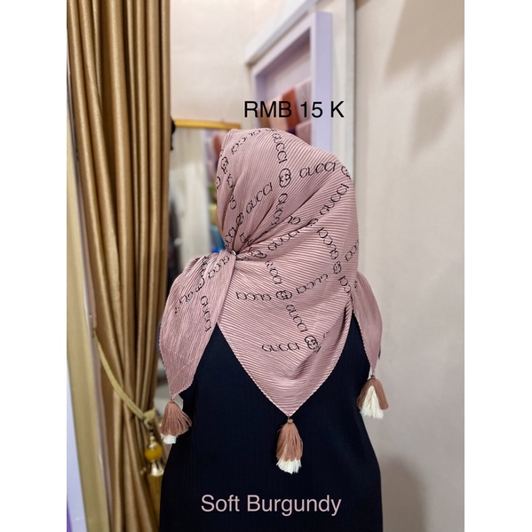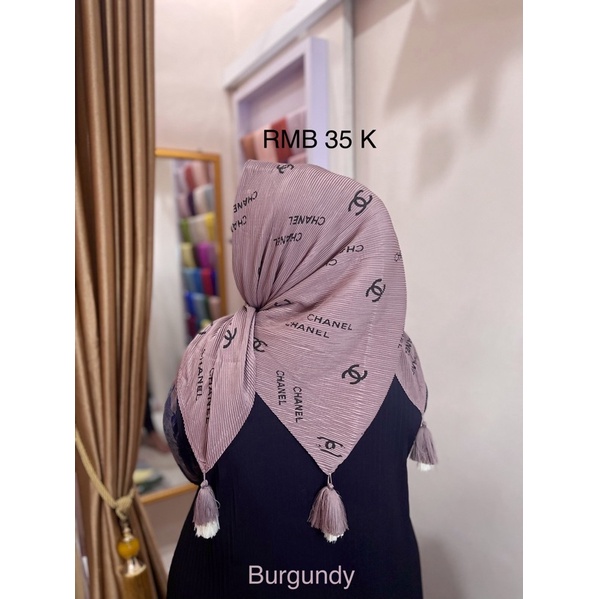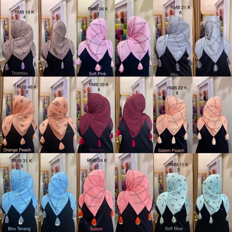 Harga Hijab Segi Empat Plisket Branded Motif Burberry Gucci Channel LV