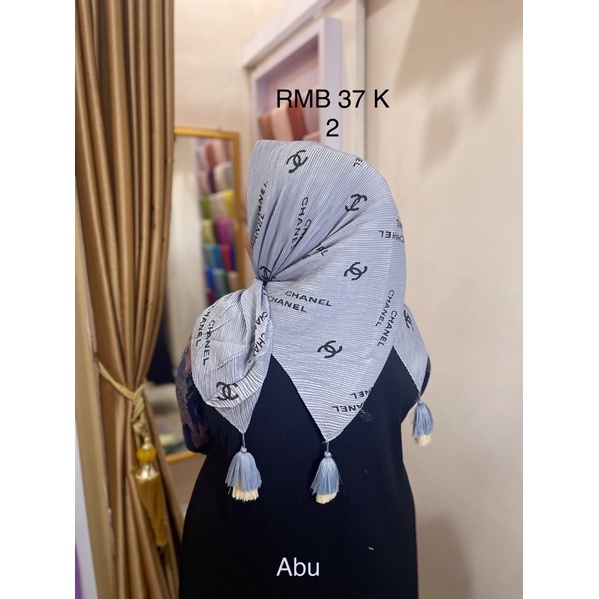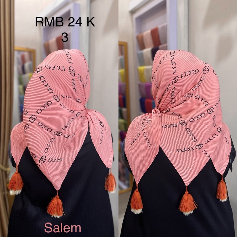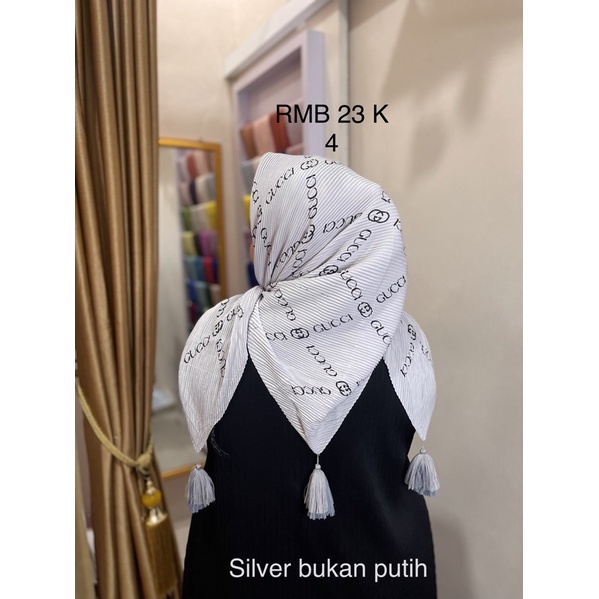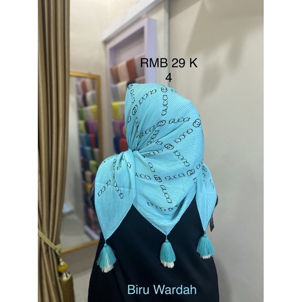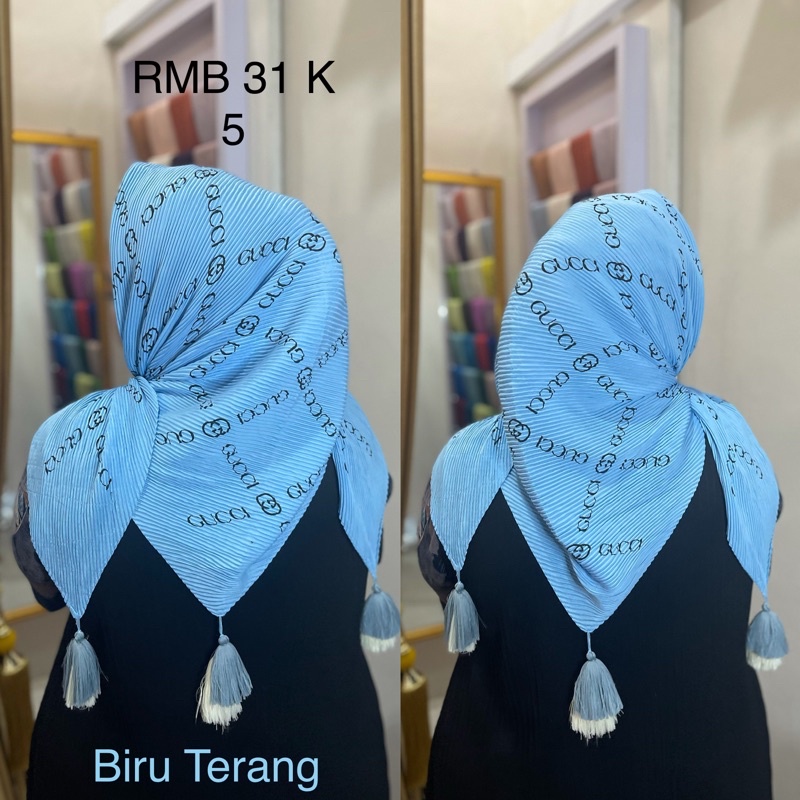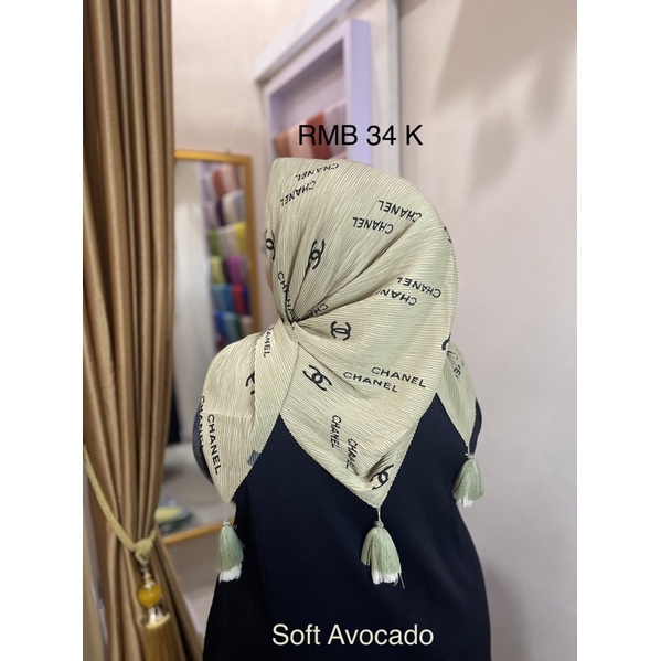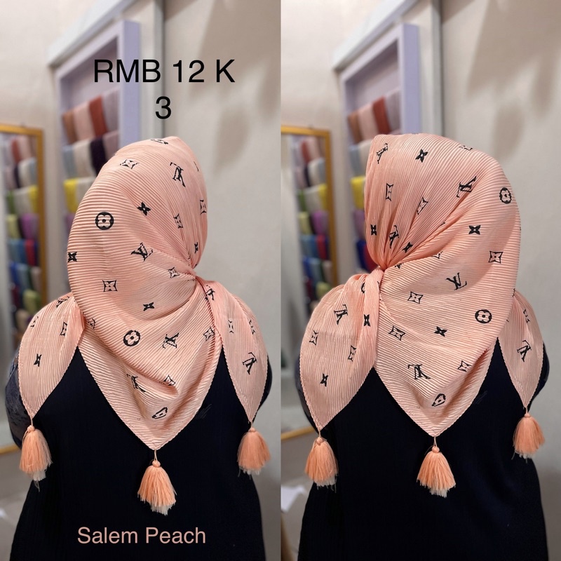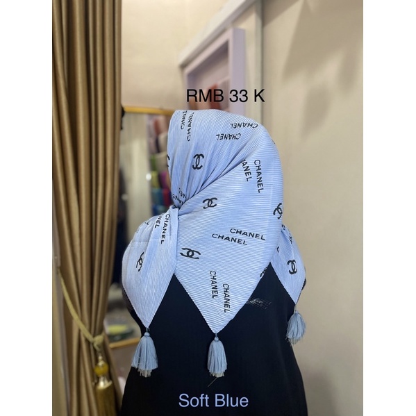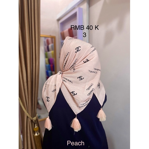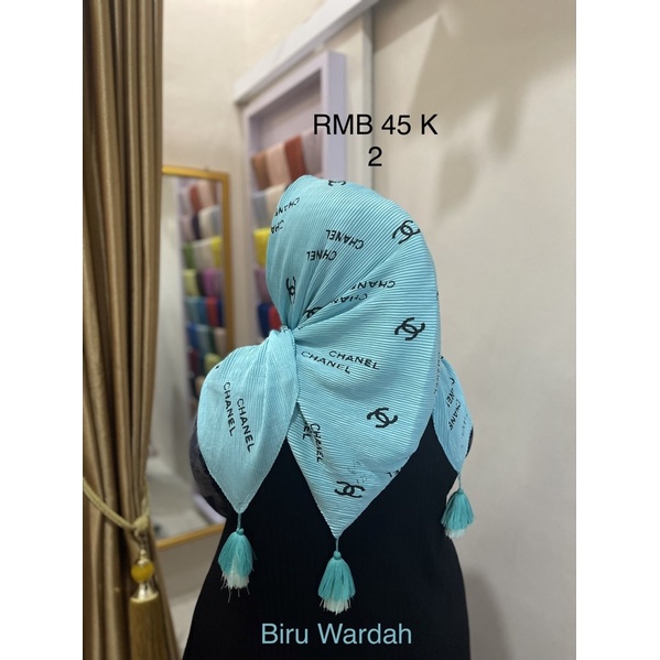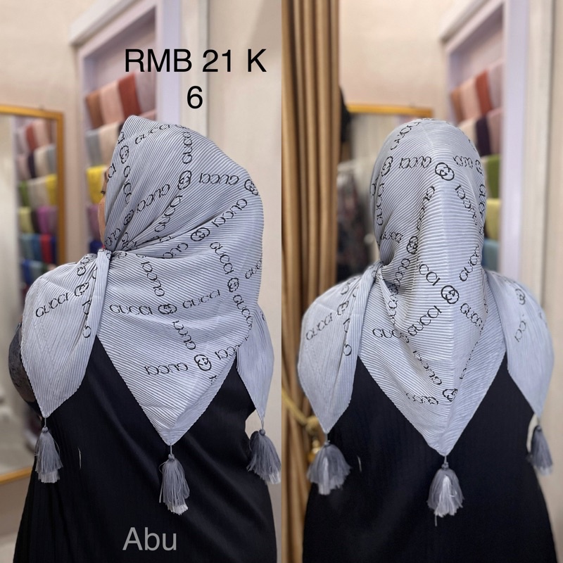 Harga Hijab Segi Empat Plisket Branded Motif Burberry Gucci Channel LV