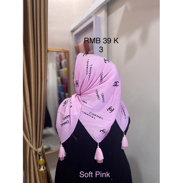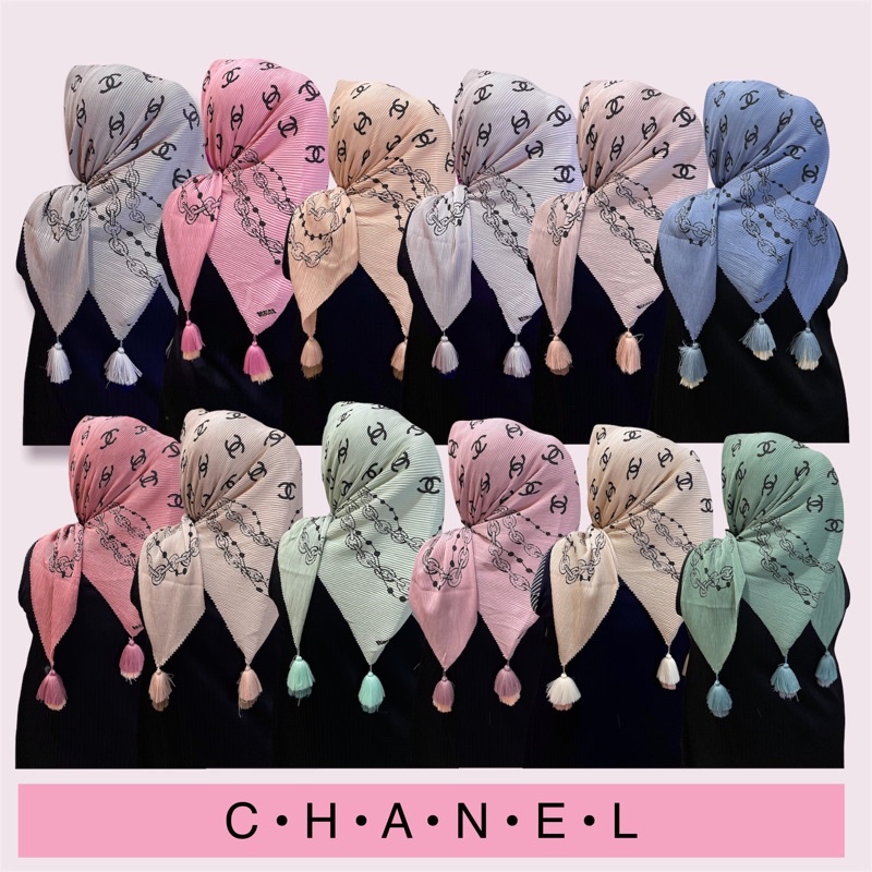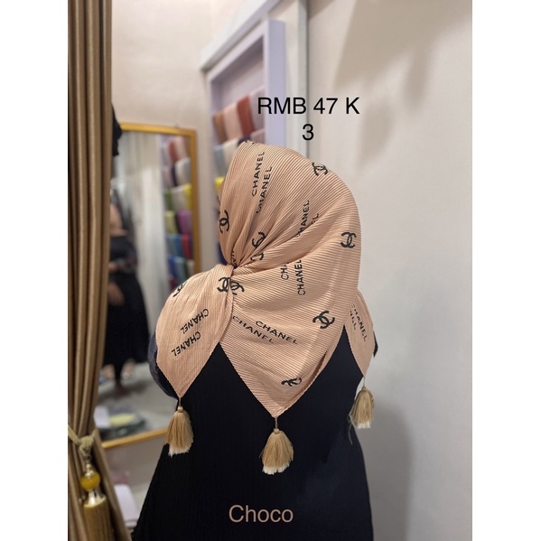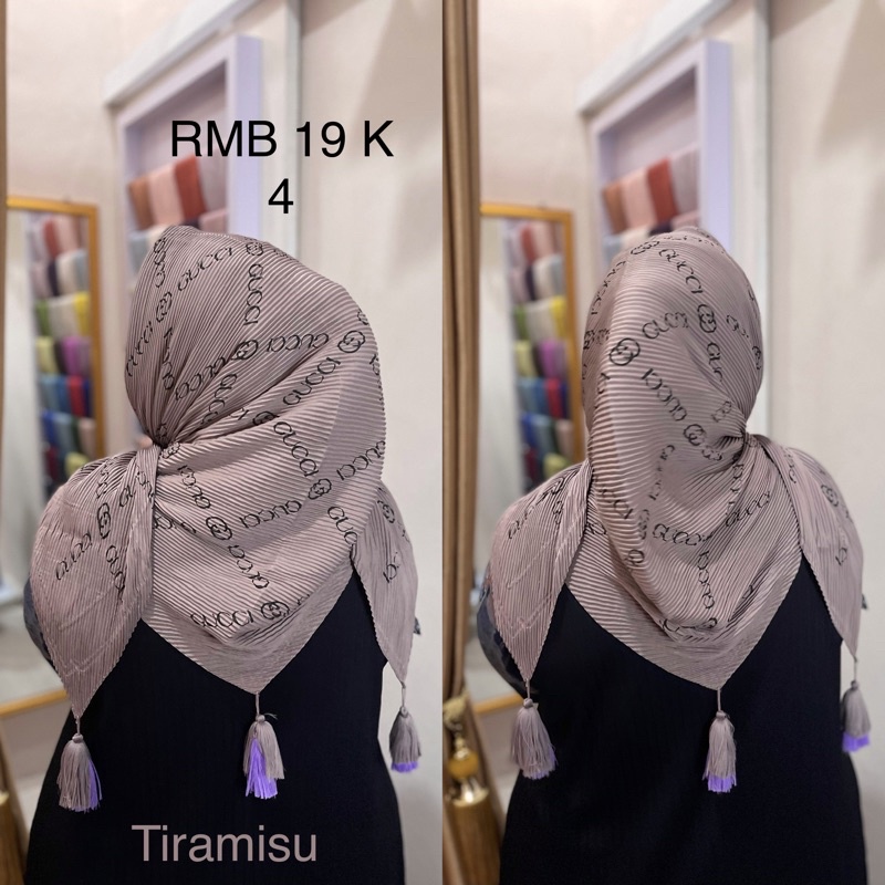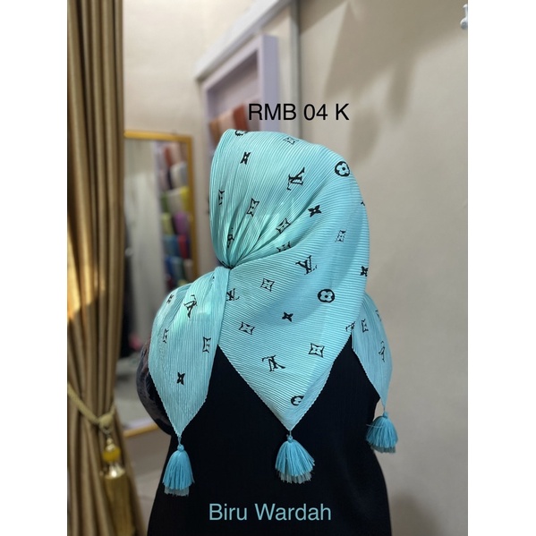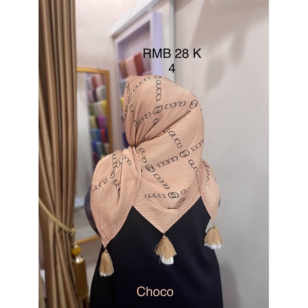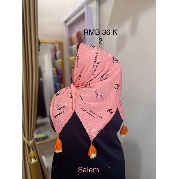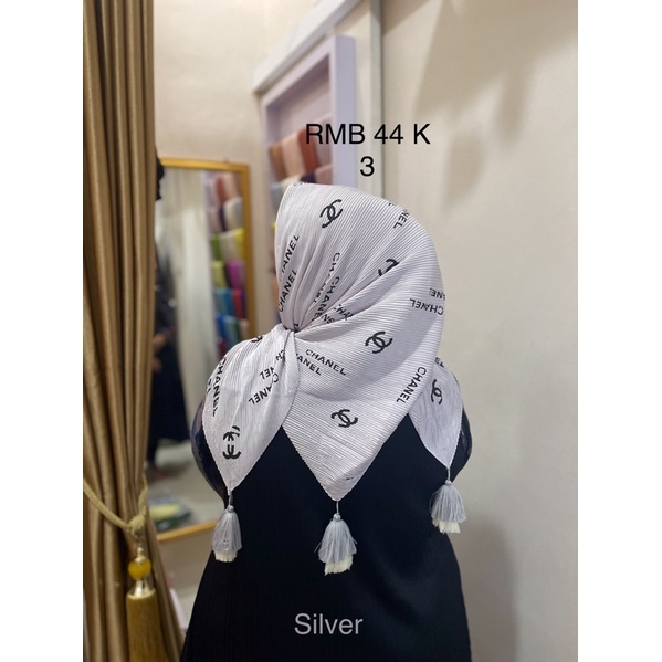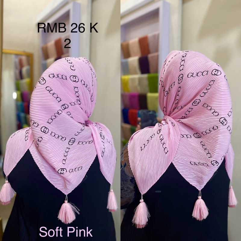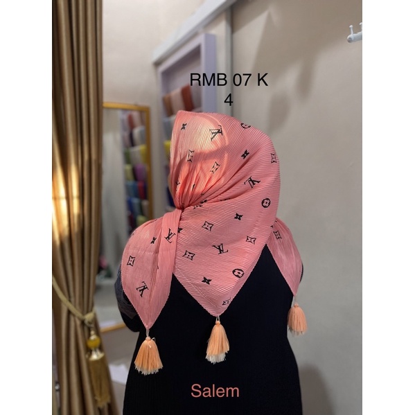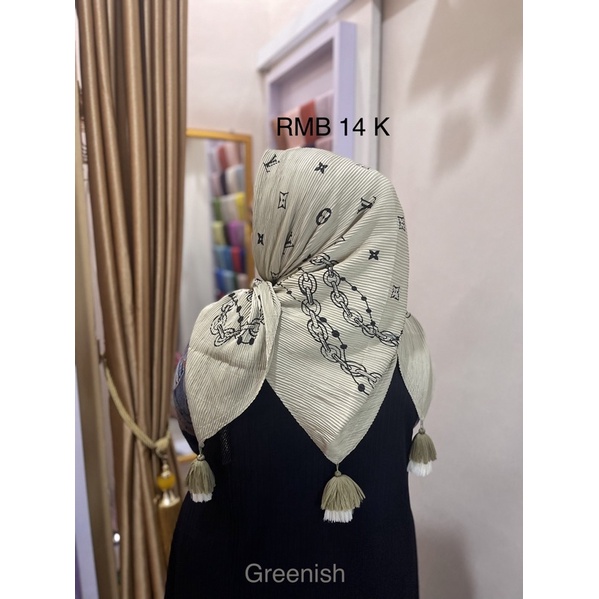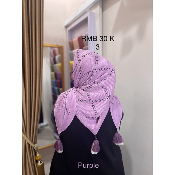 Harga Hijab Segi Empat Plisket Branded Motif Burberry Gucci Channel LV
