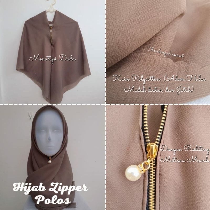 hijab zipper segiempat square instan pollycotton / krudung resleting polos segi empat instant