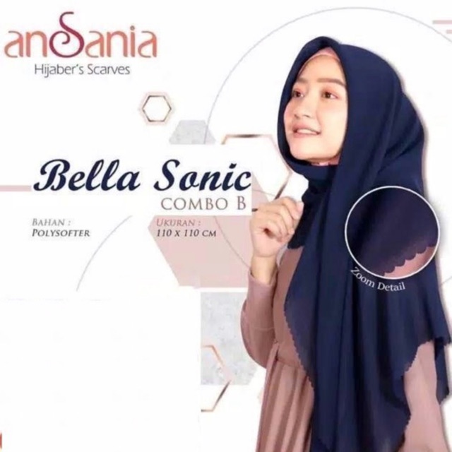 Hijab Segi Empat Bella Sonic Polos seri B Lasercut