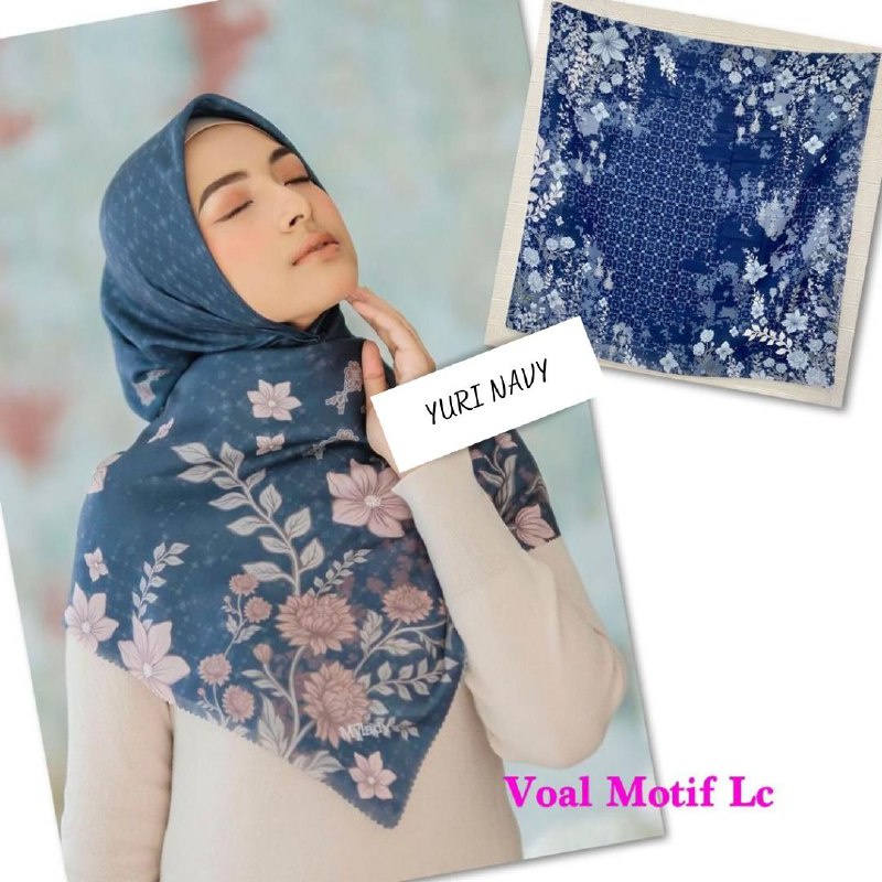 Hijab Voal Segiempat Motif YURI NAVY Jilbab square Denay Kw Lasercut Premium