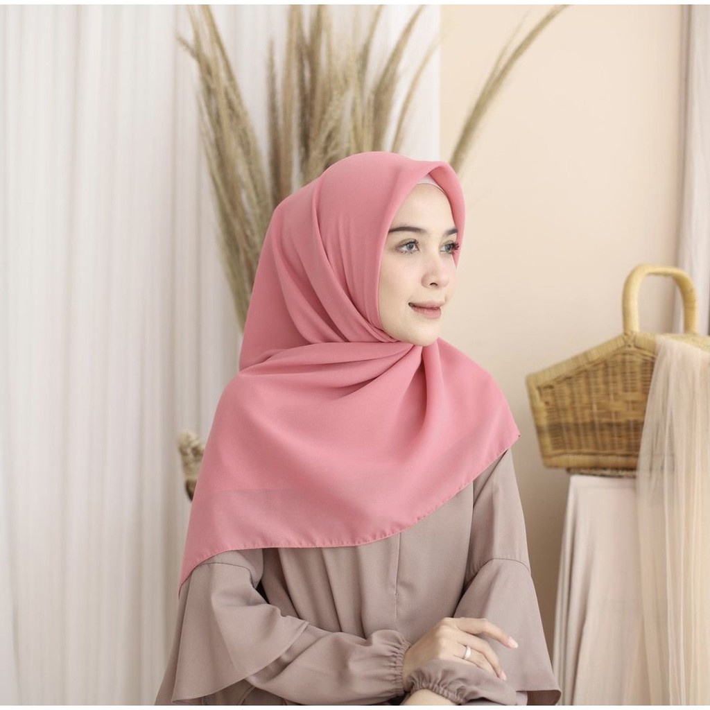 Hijab Segiempat Bella Square Premium - Kerudung Basic Double Chiffon Polos Terbaru - Jilbab Segi Empat Pollycotton