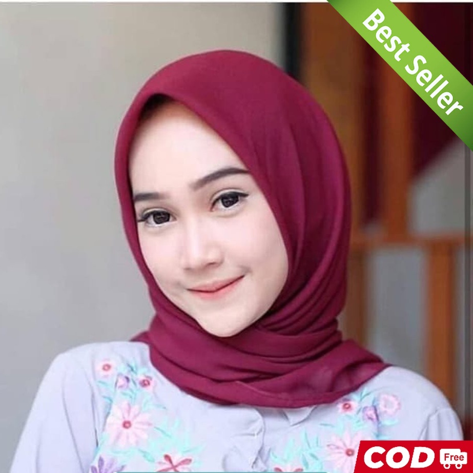 Harga Daily Hijab Segiempat Bella square Premium Polos - Pollycotton 115X115cm - Kerudung Double Hycon Terbaru Cod - Free Ikat Rambut