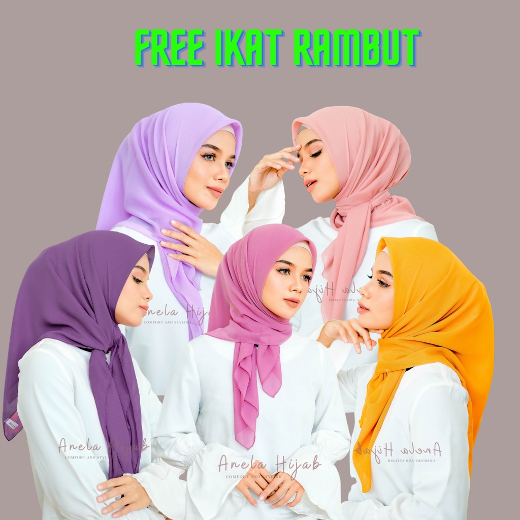 Anela Daily hijab Segiempat Bella square 115x115 Pollycotton | kerudung Bella Basic Polos Potton | Jilbab Segi Empat | Daily Hijab double hycon Polos Terbaru