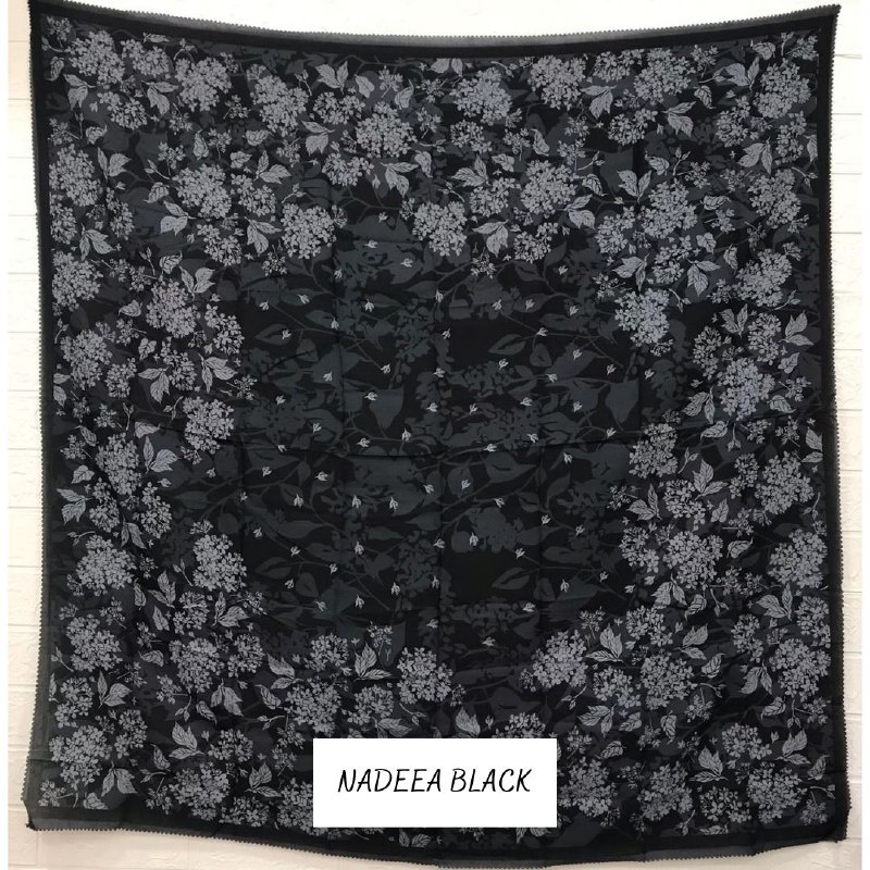 Harga Hijab Segiempat Voal Premium Motif NADEEA BLACK Jilbab Square Denay Kw Lasercut