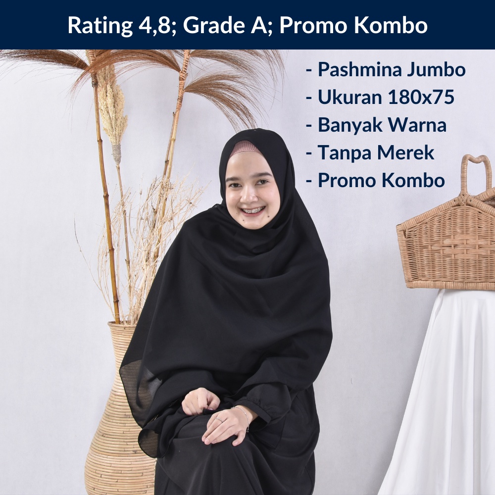 Produk Pashmina Syari Jumbo 180x75 Bahan Pollycotton Premium Grade A Pasmina Pasminah Fasmina Murah Grosir ini harganya adalah Rp. 14.900,00 dan saat ini sedang Diskon 32%, Produk ini sendiri saat saya tulis Artikel ini sudah dilihat sebanyak kali dan sudah disukai sebanyak 4173 kali.