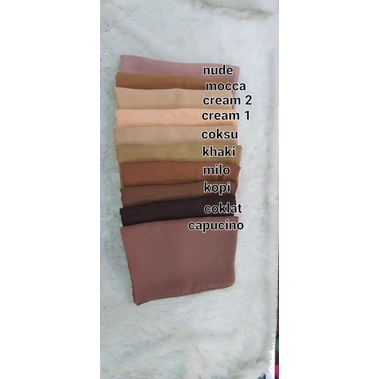 Produk ini memiliki 28 Variasi Warna yaitu : Ijo botol,Army,Dustyungu,Salem,Abu muda,Dustypink,Maroon,Putihbw,Hitam,Putih,Nude,Mocca,Cream2,Coksu,Khaki,Milo,Kopi,Coklat,Capucino,Abutu,Abu sma,Grey,Aquamarine,Navy,Hijau wardah,Seaword,Biru,Cream 1,