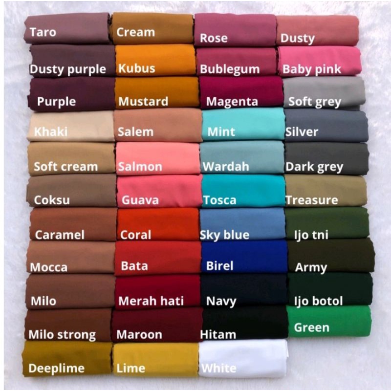 Produk ini memiliki 12 Variasi WARNA yaitu : SEGI4 HITAM,SEGI4 NAVY,SEGI4 MAROON,SEGI4 DUSTYPINK,SEGI4 WHITE,SEGI4 ARMY,SEGI4 SOFTCREAM,SEGI4 DARKGREY,SEGI4 CREAM,SEGI4 MILO,SEGI4 COKSU,Lainnya (Catatan),