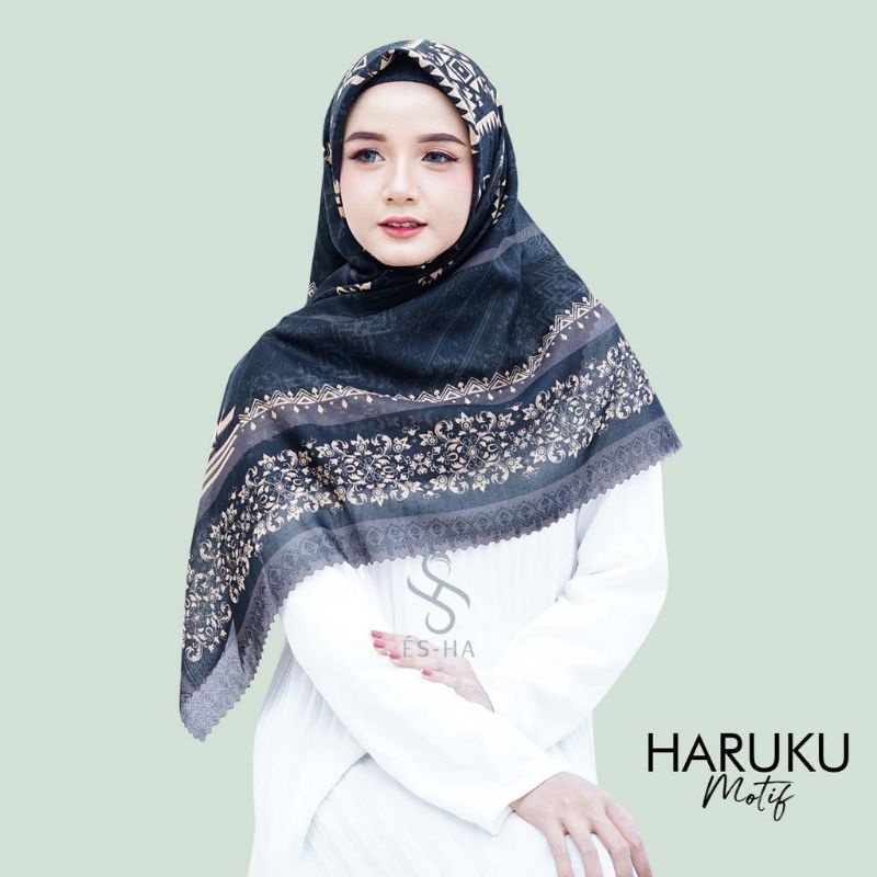 Hijab Voal Segiempat Motif HARUKU Jilbab square Denay Kw Lasercut Premium