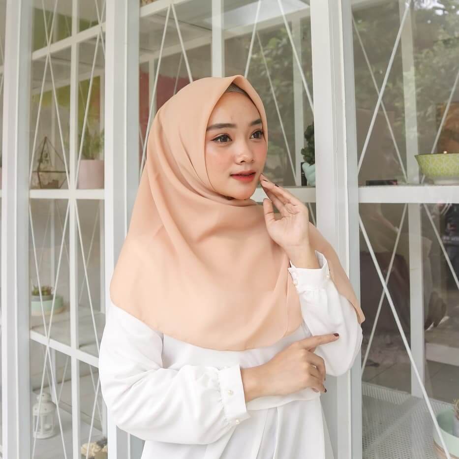 kerudung jilbab segi empat BELLA SQUARE polos bahan double hycon ( pollycotton ) premium jahit tepi murah meriah / segi empat premium warna peach / salem